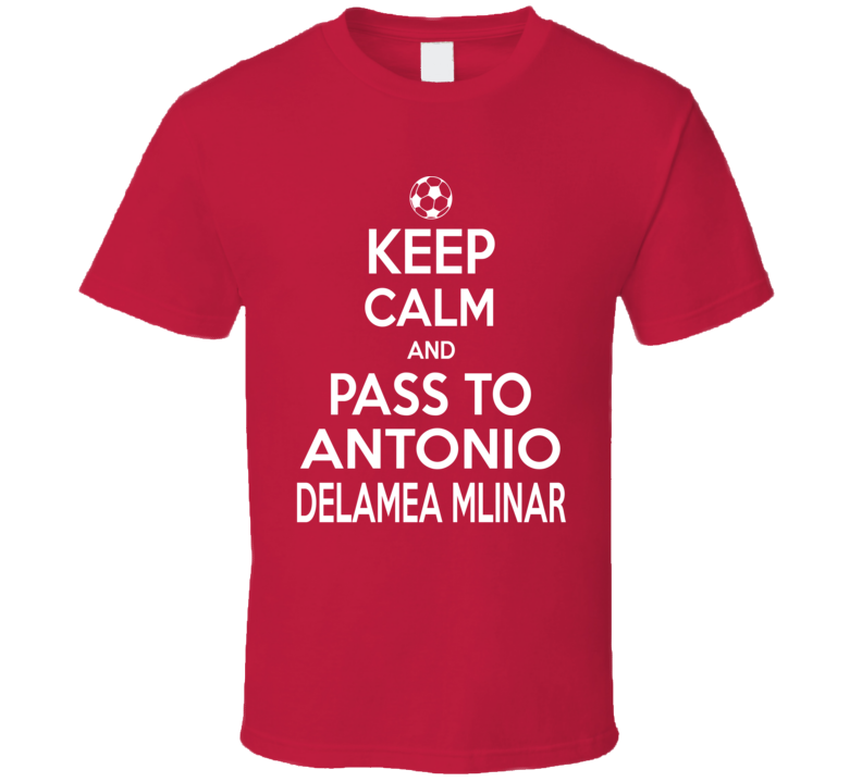 Antonio Delamea Mlinar Keep Calm Pass To New England Soccer T Shirt is available on a Red 100% Cotton Tshirt. The Antonio Delamea Mlinar Keep Calm Pass To New England Soccer T Shirt is available in all sizes. Please select your desired shirt style and size from the drop down above.