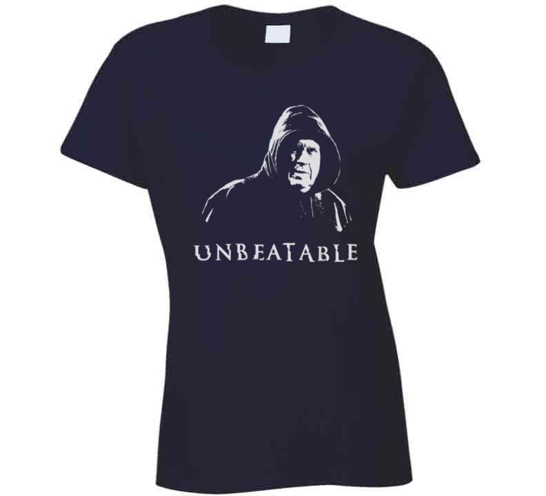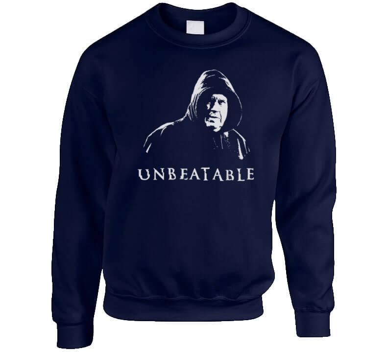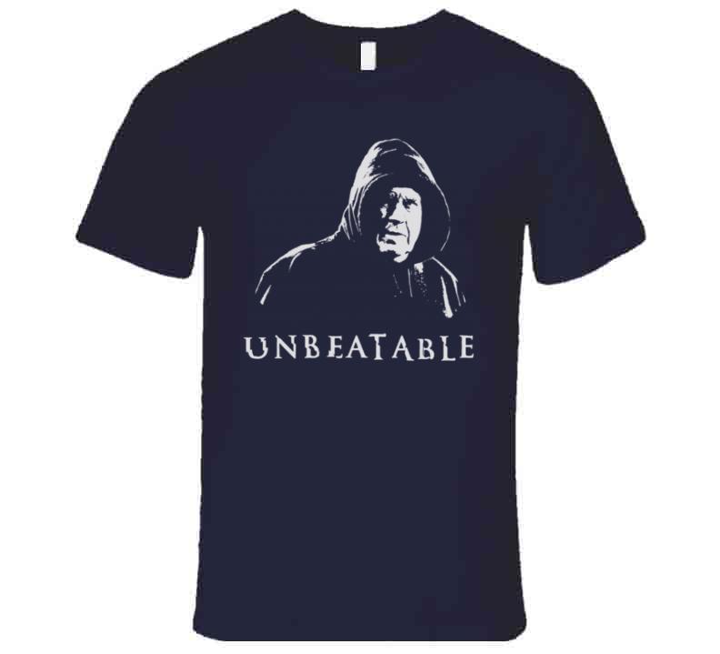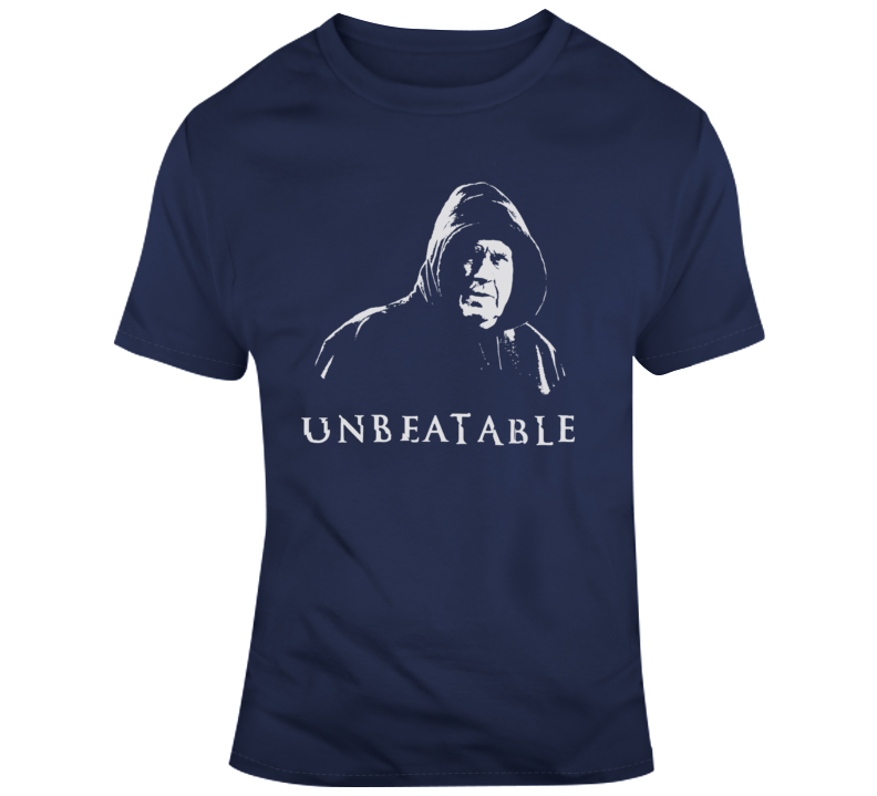 Bill Belichick New England Unbeatable Unbreakable Parody Football Fan T Shirt is available on a Navy 100% Cotton Tshirt. The Bill Belichick New England Unbeatable Unbreakable Parody Football Fan T Shirt is available in all sizes. Please select your desired shirt style and size from the drop down above.