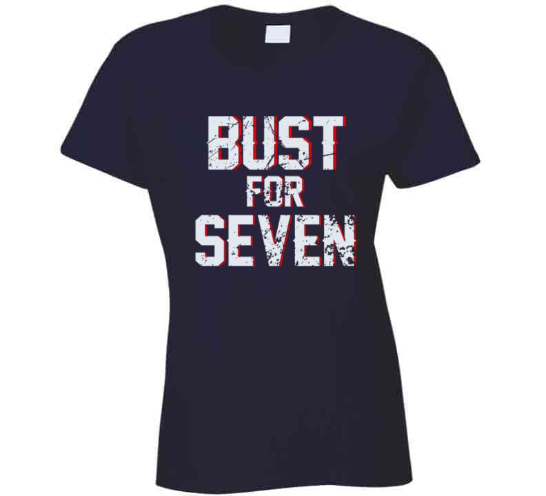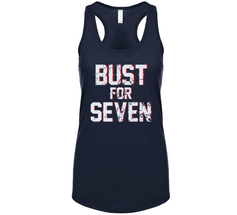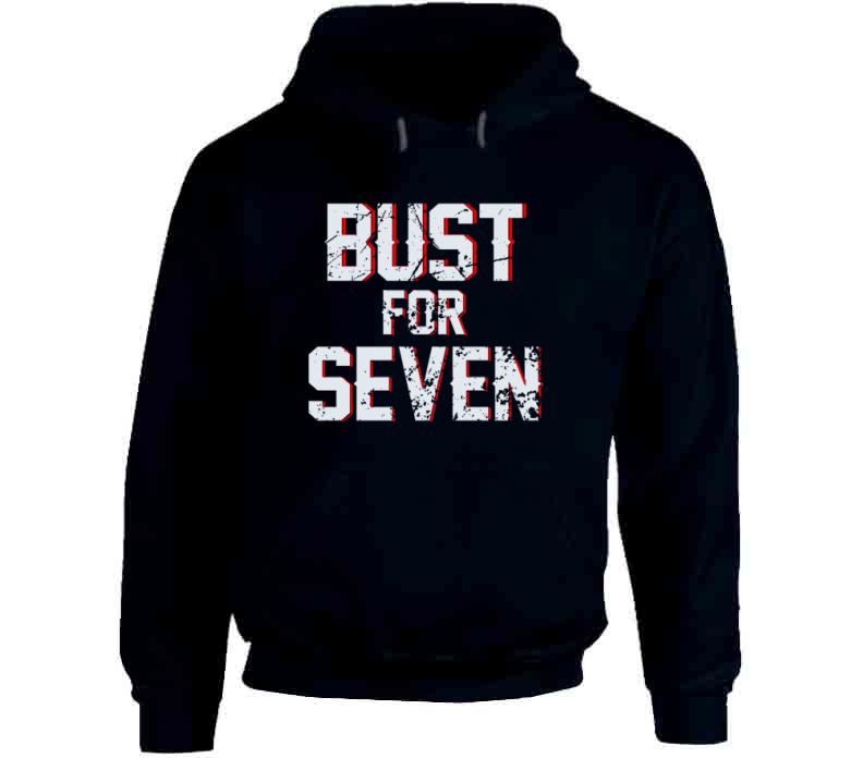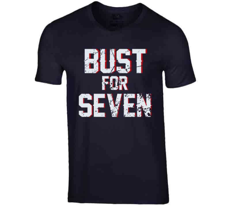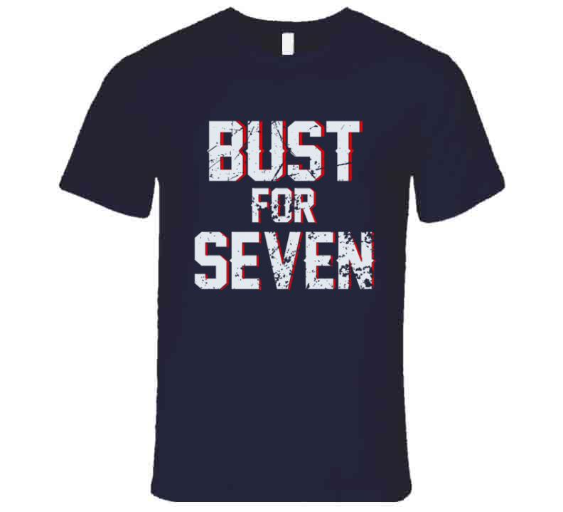 Bust For Seven New England Football Fan T Shirt is available on a Navy 100% Cotton Tshirt. The Bust For Seven New England Football Fan T Shirt is available in all sizes. Please select your desired shirt style and size from the drop down above.