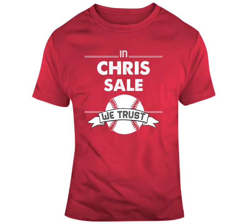 Chris Sale We Trust Boston Baseball Fan T Shirt is available on a Red 100% Cotton Tshirt. The Chris Sale We Trust Boston Baseball Fan T Shirt is available in all sizes. Please select your desired shirt style and size from the drop down above.