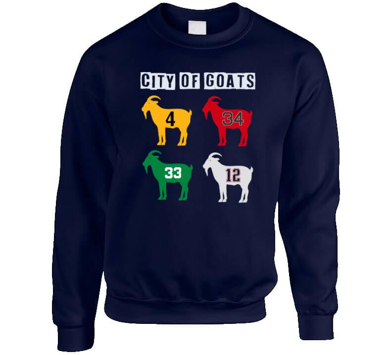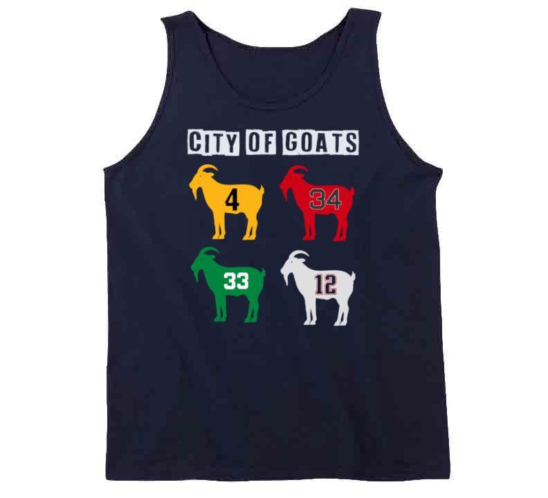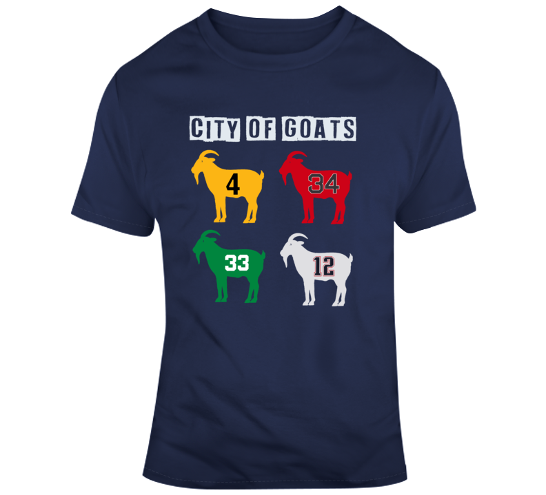 City Of Goats City Of Champions Boston Greats T Shirt is available on a Navy 100% Cotton Tshirt. The City Of Goats City Of Champions Boston Greats T Shirt is available in all sizes. Please select your desired shirt style and size from the drop down above.