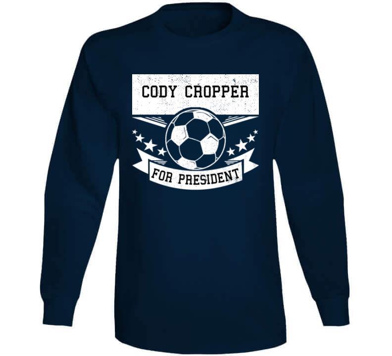 Cody Cropper For President New England Soccer T Shirt is available on a Navy 100% Cotton Tshirt. The Cody Cropper For President New England Soccer T Shirt is available in all sizes. Please select your desired shirt style and size from the drop down above.