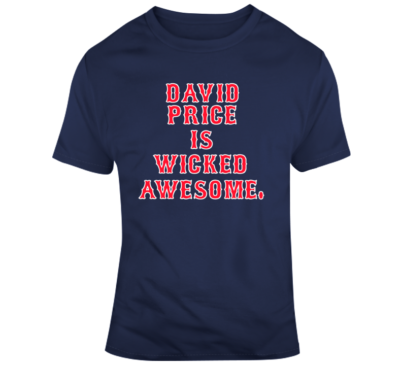 David Price is Wicked Awesome Boston Baseball Fan T Shirt is available on a Navy 100% Cotton Tshirt. The David Price is Wicked Awesome Boston Baseball Fan T Shirt is available in all sizes. Please select your desired shirt style and size from the drop down above.
