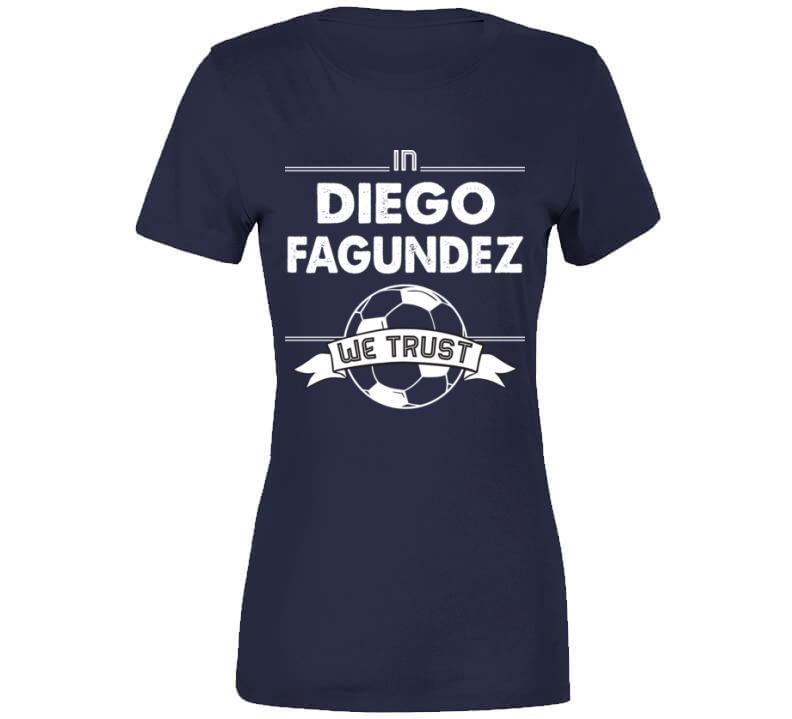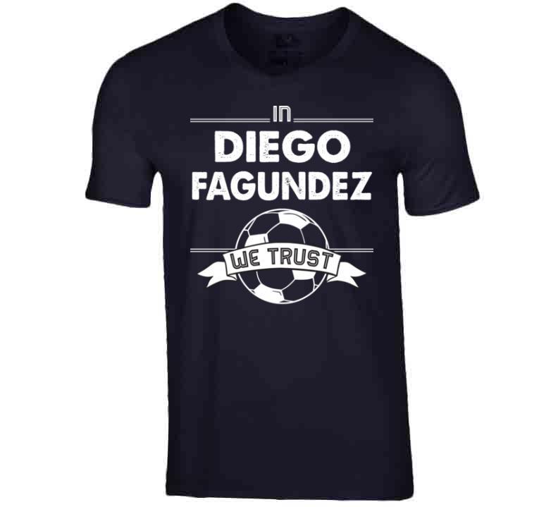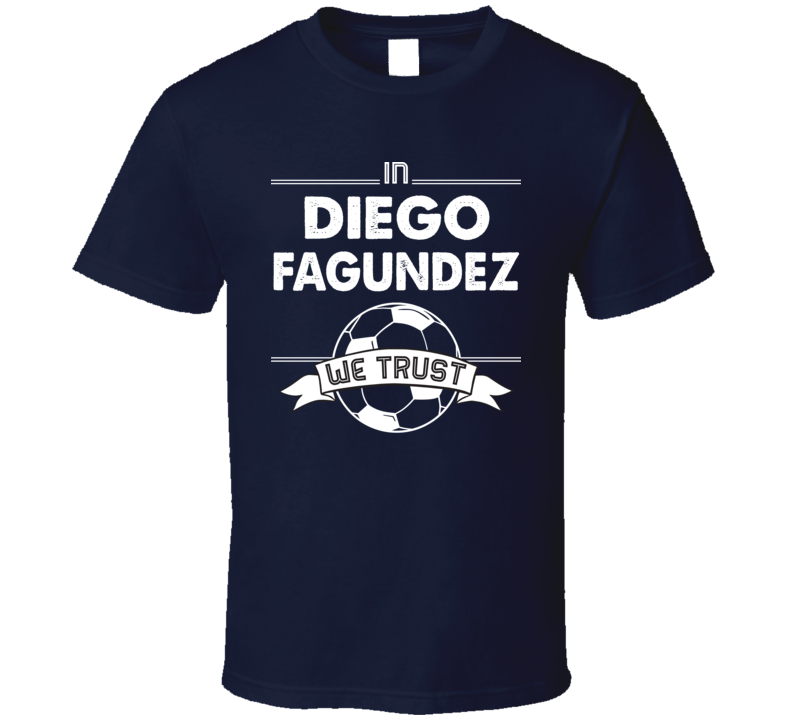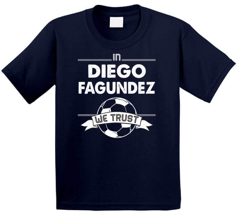 Diego Fagundez We Trust New England Soccer T Shirt is available on a Navy 100% Cotton Tshirt. The Diego Fagundez We Trust New England Soccer T Shirt is available in all sizes. Please select your desired shirt style and size from the drop down above.