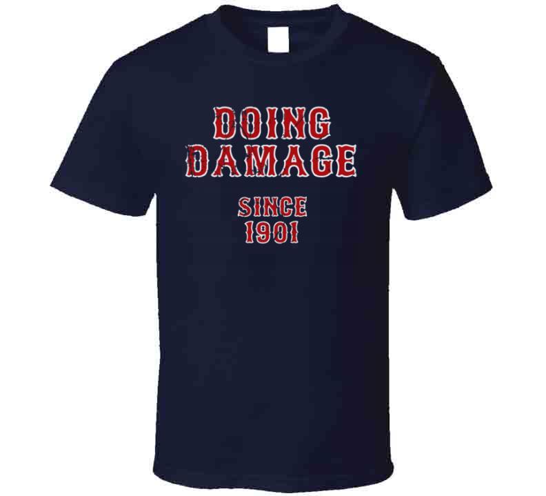 Doing Damage Since 1901 Boston Baseball Fan T Shirt is available on a Navy 100% Cotton Tshirt. The Doing Damage Since 1901 Boston Baseball Fan T Shirt is available in all sizes. Please select your desired shirt style and size from the drop down above.