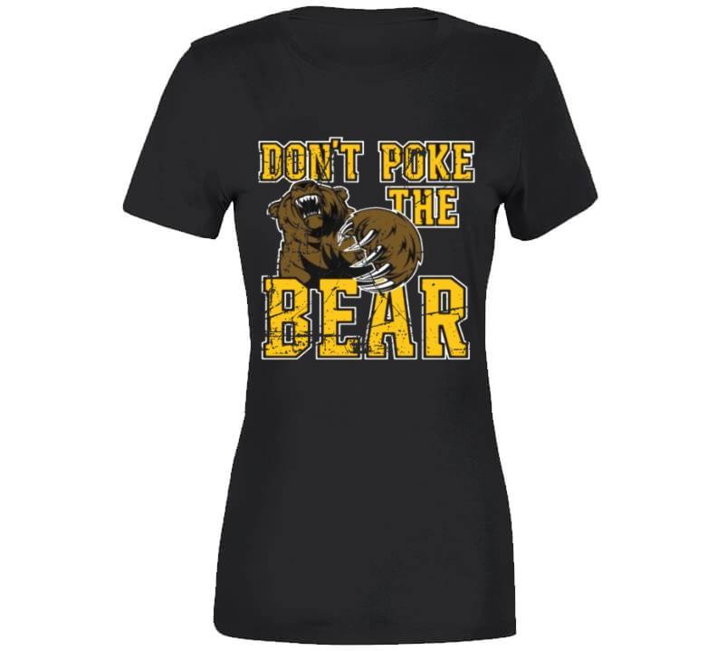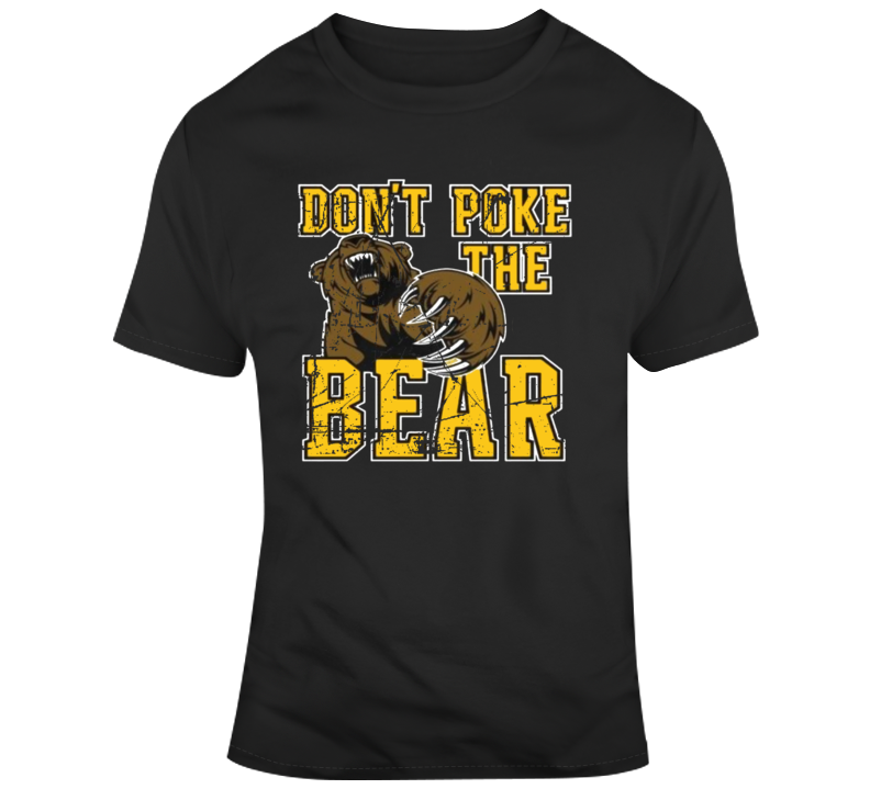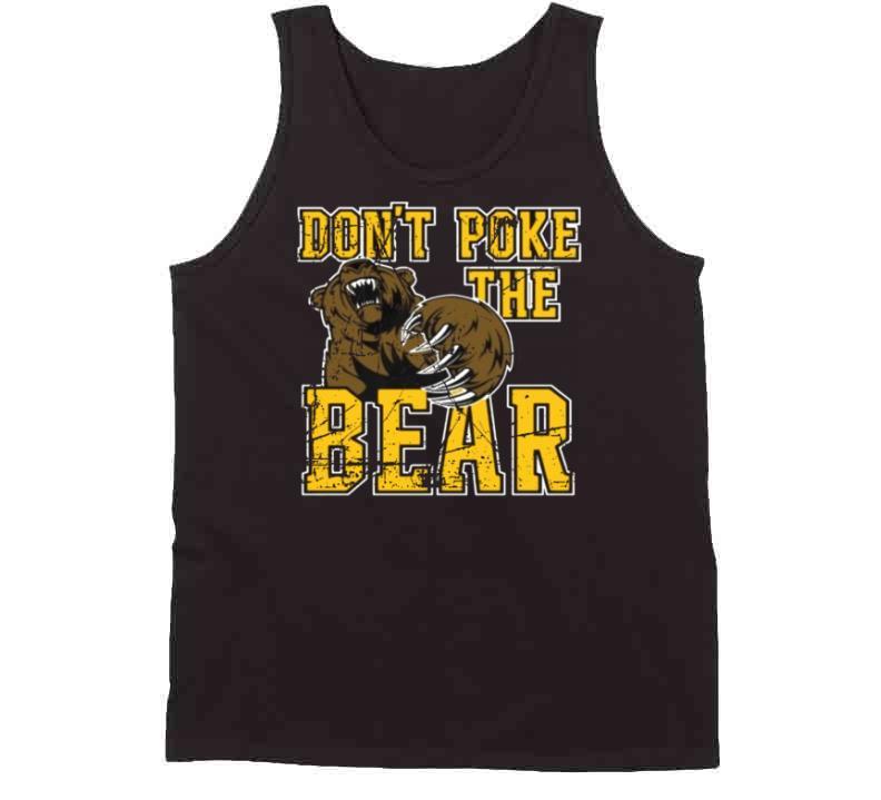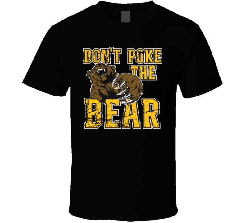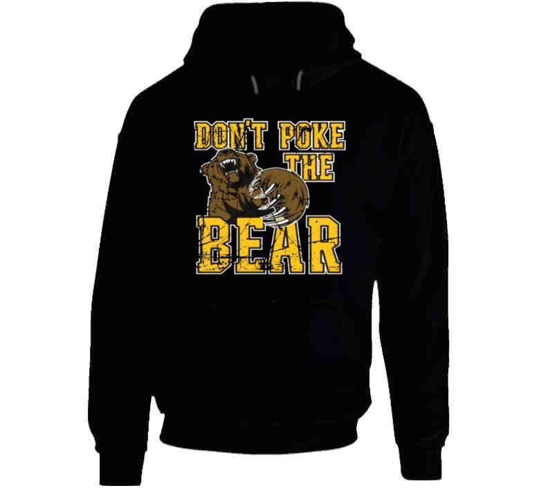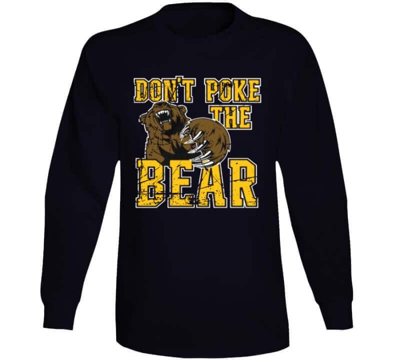 Don't Poke The Bear Boston Hockey Fan Distressed T Shirt is available on a Black 100% Cotton Tshirt. The Don't Poke The Bear Boston Hockey Fan Distressed T Shirt is available in all sizes. Please select your desired shirt style and size from the drop down above.