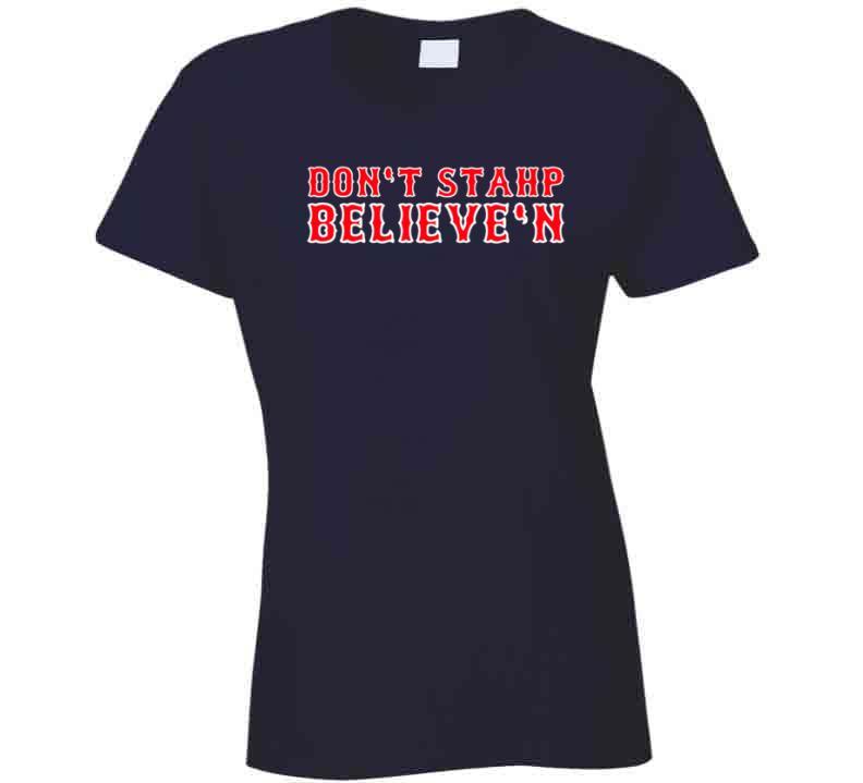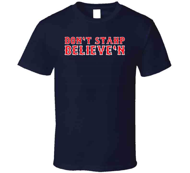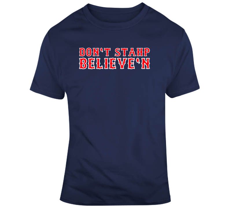 Dont Stop Believen Boston Baseball Fan Distressed T Shirt is available on a Navy 100% Cotton Tshirt. The Dont Stop Believen Boston Baseball Fan Distressed T Shirt is available in all sizes. Please select your desired shirt style and size from the drop down above.