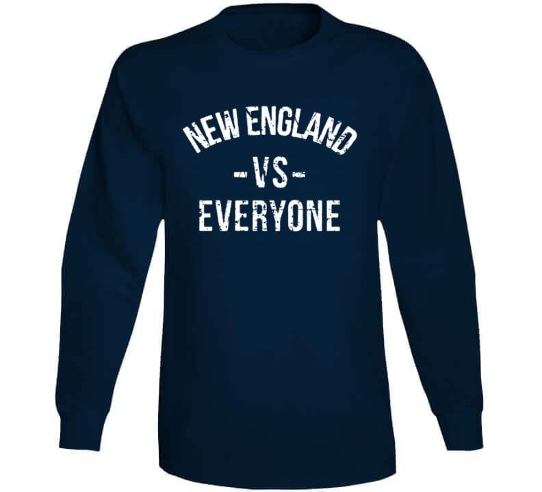 Dynasty New England Vs Everyone New England Football Fan Navy T Shirt is available on a Navy 100% Cotton Tshirt. The Dynasty New England Vs Everyone New England Football Fan Navy T Shirt is available in all sizes. Please select your desired shirt style and size from the drop down above.