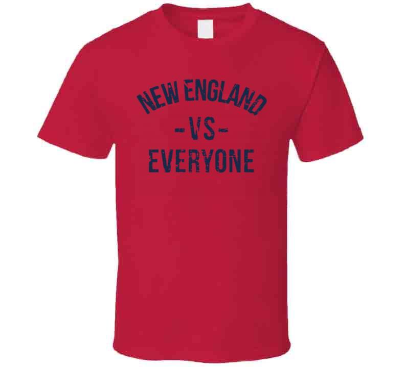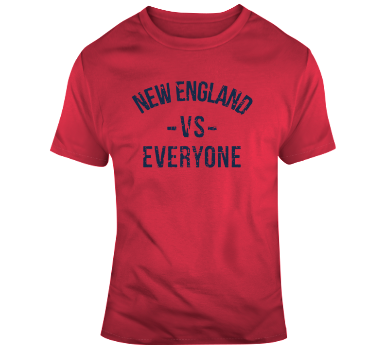 Dynasty New England Vs Everyone New England Football Fan T Shirt is available on a Red 100% Cotton Tshirt. The Dynasty New England Vs Everyone New England Football Fan T Shirt is available in all sizes. Please select your desired shirt style and size from the drop down above.