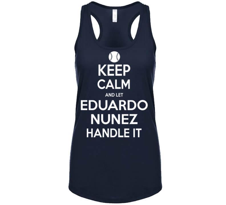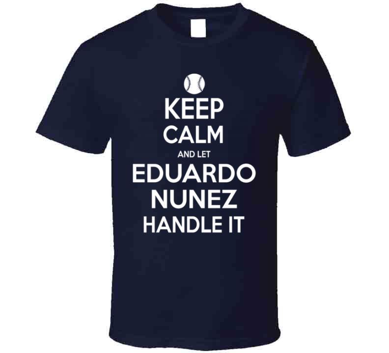 Eduardo Nunez Keep Calm Boston Baseball Fan T Shirt is available on a Navy 100% Cotton Tshirt. The Eduardo Nunez Keep Calm Boston Baseball Fan T Shirt is available in all sizes. Please select your desired shirt style and size from the drop down above.