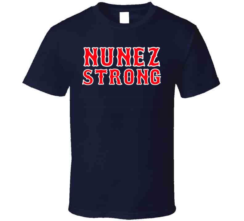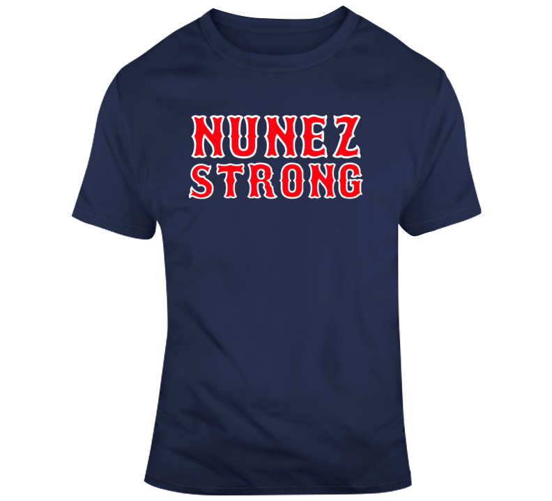 Eduardo Nunez Nunez Strong Boston Baseball Fan T Shirt is available on a Navy 100% Cotton Tshirt. The Eduardo Nunez Nunez Strong Boston Baseball Fan T Shirt is available in all sizes. Please select your desired shirt style and size from the drop down above.