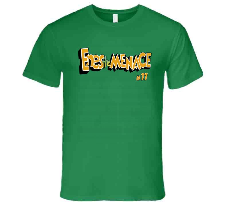 Enes The Menace Dennis Parody Enes Kanter Boston Basketball Fan T Shirt is available on a Irish Green 100% Cotton Tshirt. The Enes The Menace Dennis Parody Enes Kanter Boston Basketball Fan T Shirt is available in all sizes. Please select your desired shirt style and size from the drop down above.