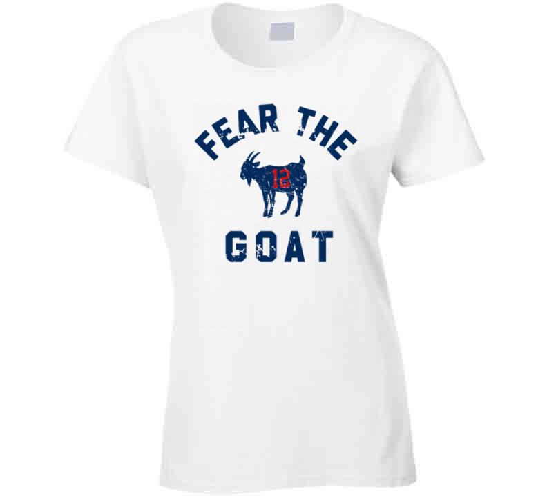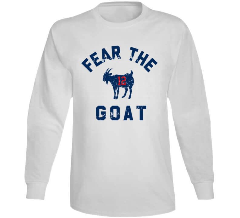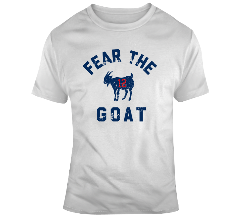 Fear The Goat Tom Brady New England Football Fan Distressed T Shirt is available on a White 100% Cotton Tshirt. The Fear The Goat Tom Brady New England Football Fan Distressed T Shirt is available in all sizes. Please select your desired shirt style and size from the drop down above.