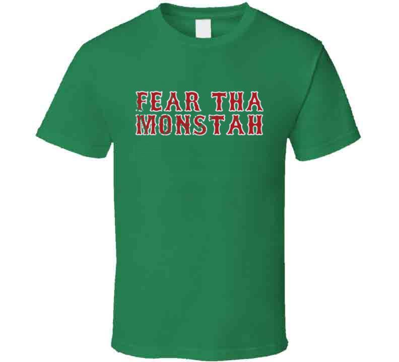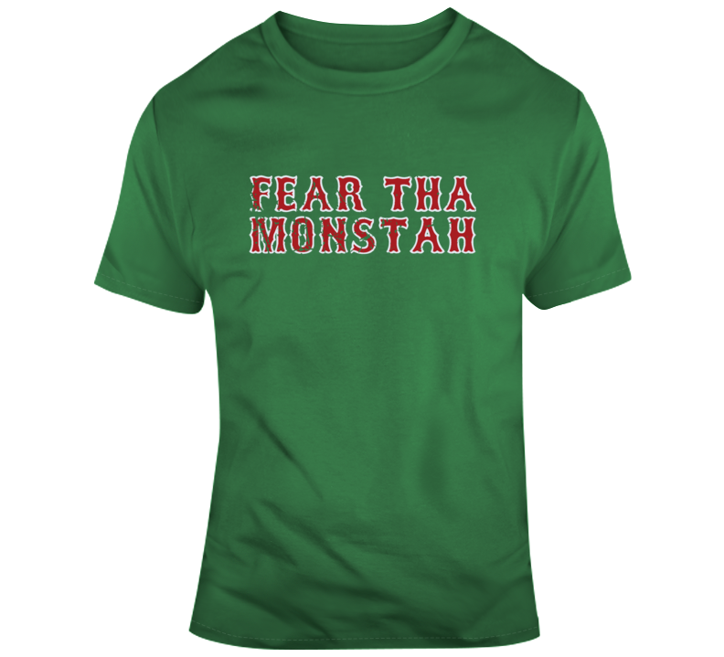 Fear The Monster Monstah Distressed Boston Baseball Fan T Shirt is available on a Irish Green 100% Cotton Tshirt. The Fear The Monster Monstah Distressed Boston Baseball Fan T Shirt is available in all sizes. Please select your desired shirt style and size from the drop down above.