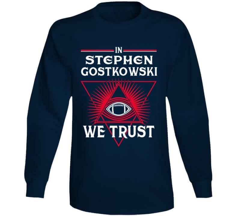 In Stephen Gostkowski We Trust New England Football Fan T Shirt is available on a Navy 100% Cotton Tshirt. The In Stephen Gostkowski We Trust New England Football Fan T Shirt is available in all sizes. Please select your desired shirt style and size from the drop down above.