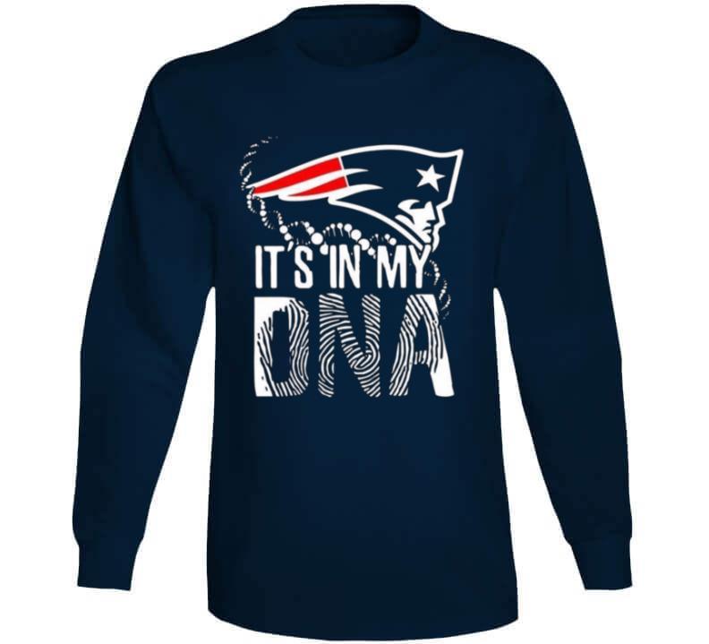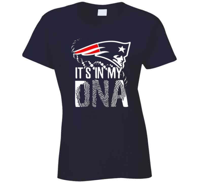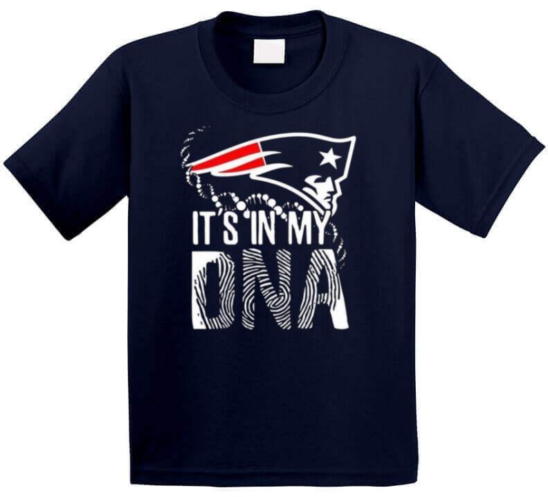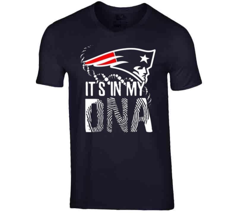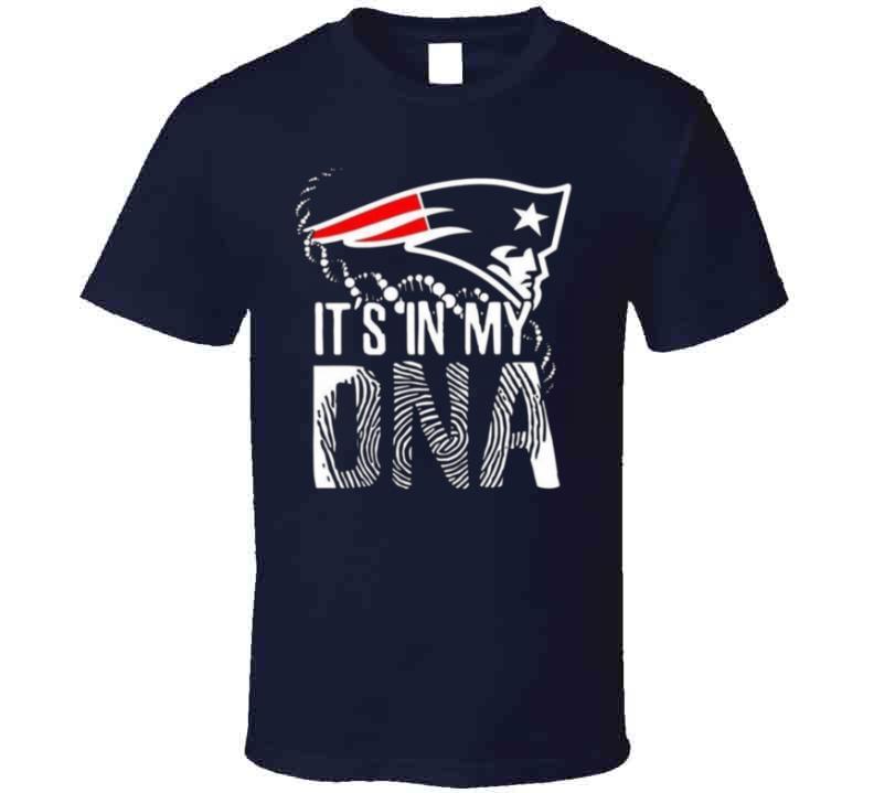 Its in My DNA New England Football Fan T Shirt is available on a Navy 100% Cotton Tshirt. The Its in My DNA New England Football Fan T Shirt is available in all sizes. Please select your desired shirt style and size from the drop down above.