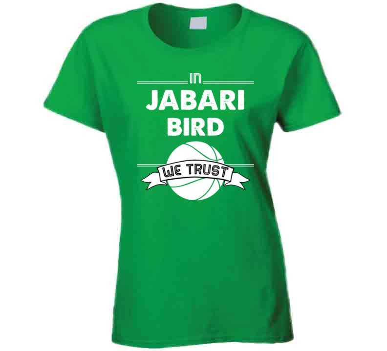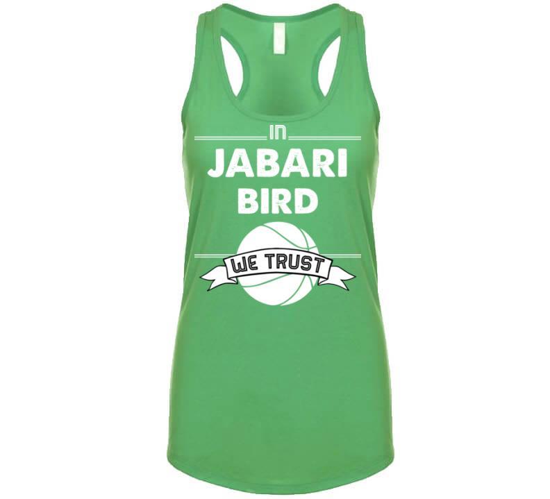 Jabari Bird We Trust Boston Basketball Fan T Shirt is available on a Irish Green 100% Cotton Tshirt. The Jabari Bird We Trust Boston Basketball Fan T Shirt is available in all sizes. Please select your desired shirt style and size from the drop down above.