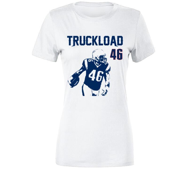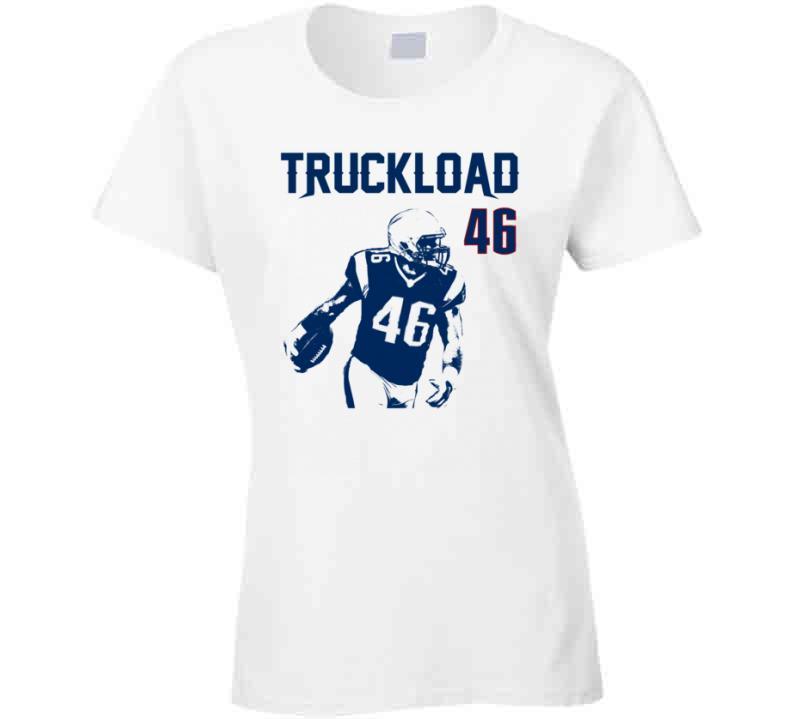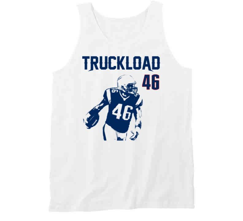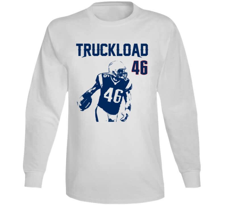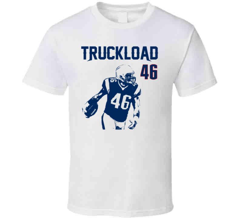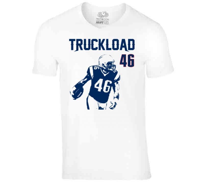 James Develin Truckload 46 New England Football Fan T Shirt is available on a White 100% Cotton Tshirt. The James Develin Truckload 46 New England Football Fan T Shirt is available in all sizes. Please select your desired shirt style and size from the drop down above.