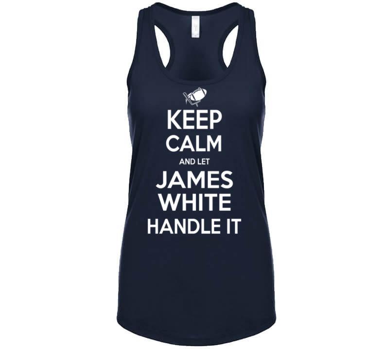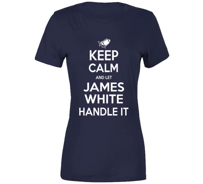 James White Keep Calm New England Football Fan T Shirt is available on a Navy 100% Cotton Tshirt. The James White Keep Calm New England Football Fan T Shirt is available in all sizes. Please select your desired shirt style and size from the drop down above.