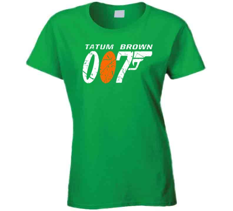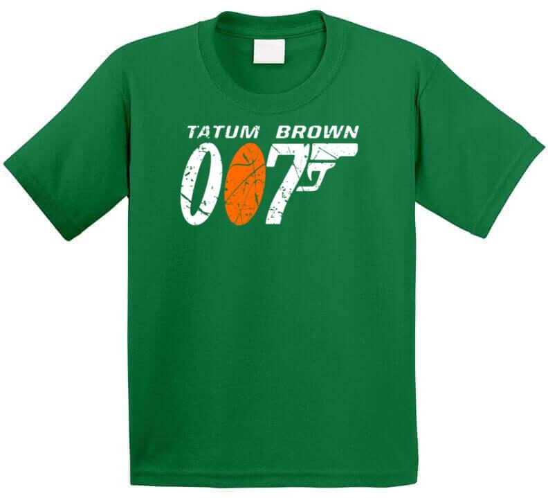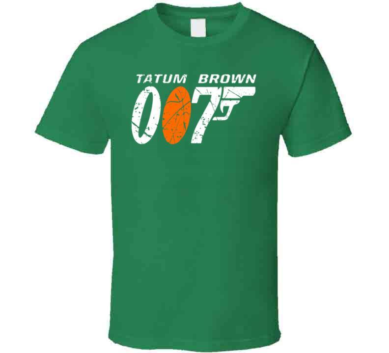 Jayson Tatum Jalen Brown 007 Parody Boston Basketball T Shirt is available on a Irish Green 100% Cotton Tshirt. The Jayson Tatum Jalen Brown 007 Parody Boston Basketball T Shirt is available in all sizes. Please select your desired shirt style and size from the drop down above.
