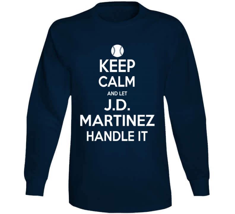 JD Martinez Keep Calm Boston Baseball Fan T Shirt is available on a Navy 100% Cotton Tshirt. The JD Martinez Keep Calm Boston Baseball Fan T Shirt is available in all sizes. Please select your desired shirt style and size from the drop down above.