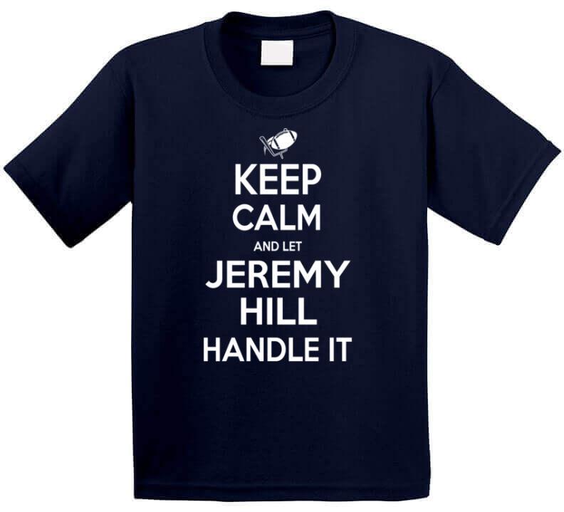 Jeremy Hill Keep Calm New England Football Fan T Shirt is available on a Navy 100% Cotton Tshirt. The Jeremy Hill Keep Calm New England Football Fan T Shirt is available in all sizes. Please select your desired shirt style and size from the drop down above.