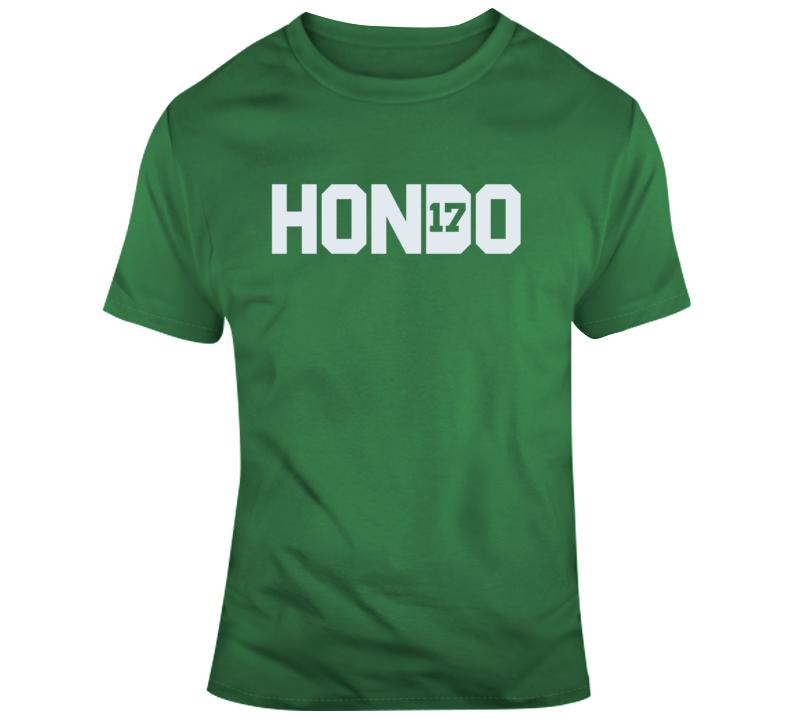 John Havlicek 17 Hondo Boston Basketball Fan T Shirt is available on a Irish Green 100% Cotton Tshirt. The John Havlicek 17 Hondo Boston Basketball Fan T Shirt is available in all sizes. Please select your desired shirt style and size from the drop down above.
