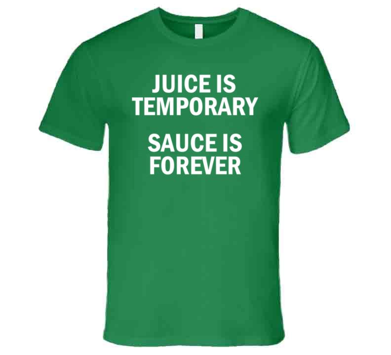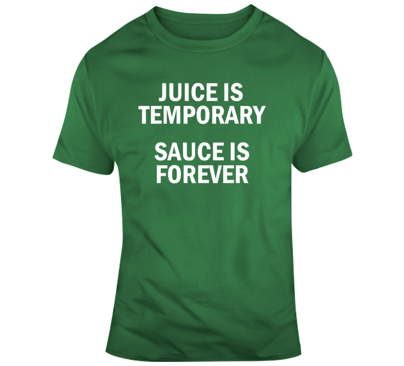 Juice Is Temporary Sauce Is Forever Kyrie Irving Boston Basketball Fan T Shirt is available on a Irish Green 100% Cotton Tshirt. The Juice Is Temporary Sauce Is Forever Kyrie Irving Boston Basketball Fan T Shirt is available in all sizes. Please select your desired shirt style and size from the drop down above.