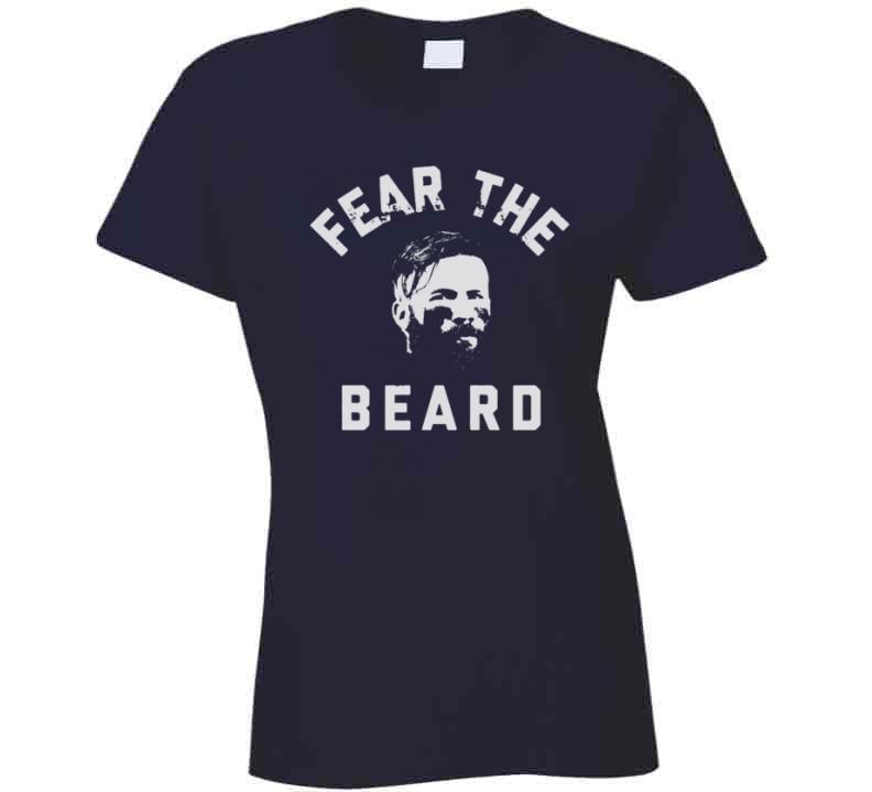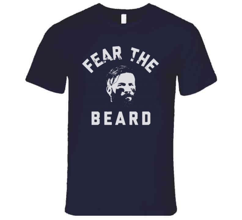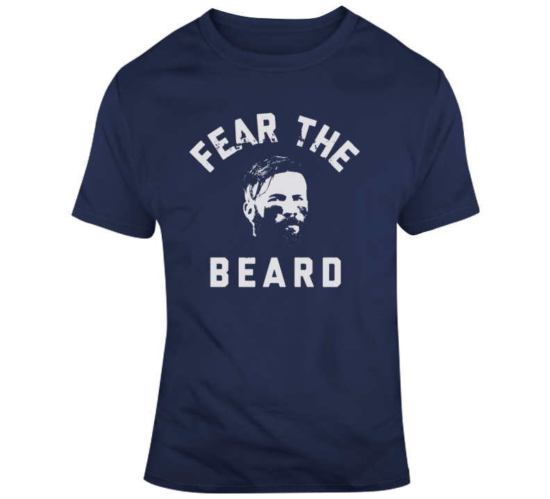 Julian Edelman Fear The Beard New England Football Fan T Shirt is available on a Navy 100% Cotton Tshirt. The Julian Edelman Fear The Beard New England Football Fan T Shirt is available in all sizes. Please select your desired shirt style and size from the drop down above.