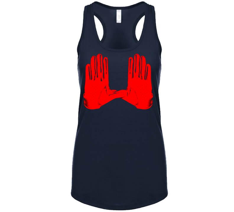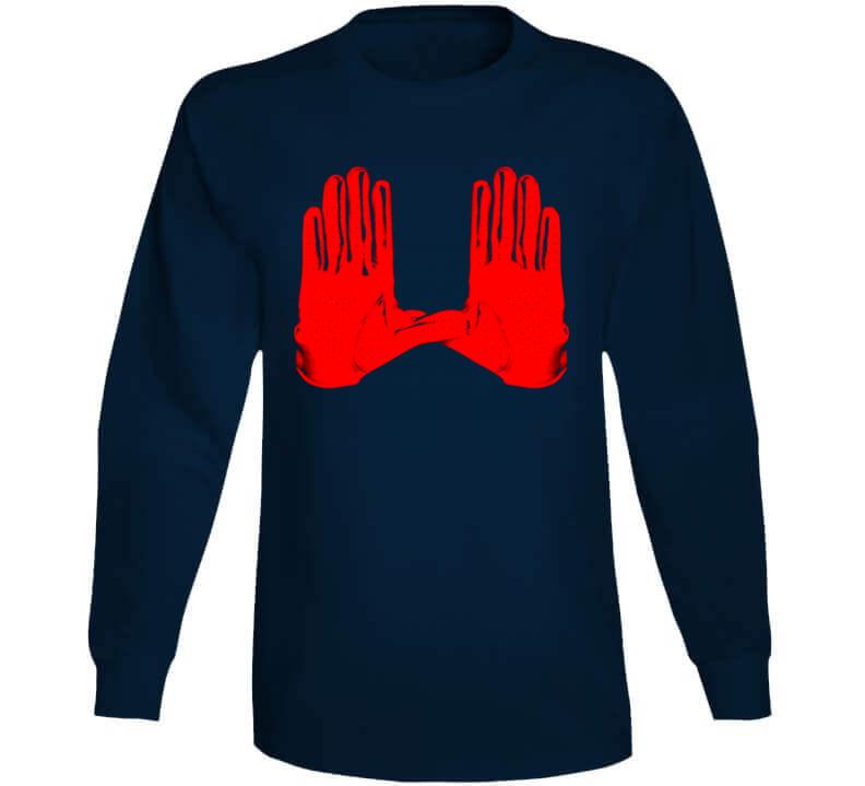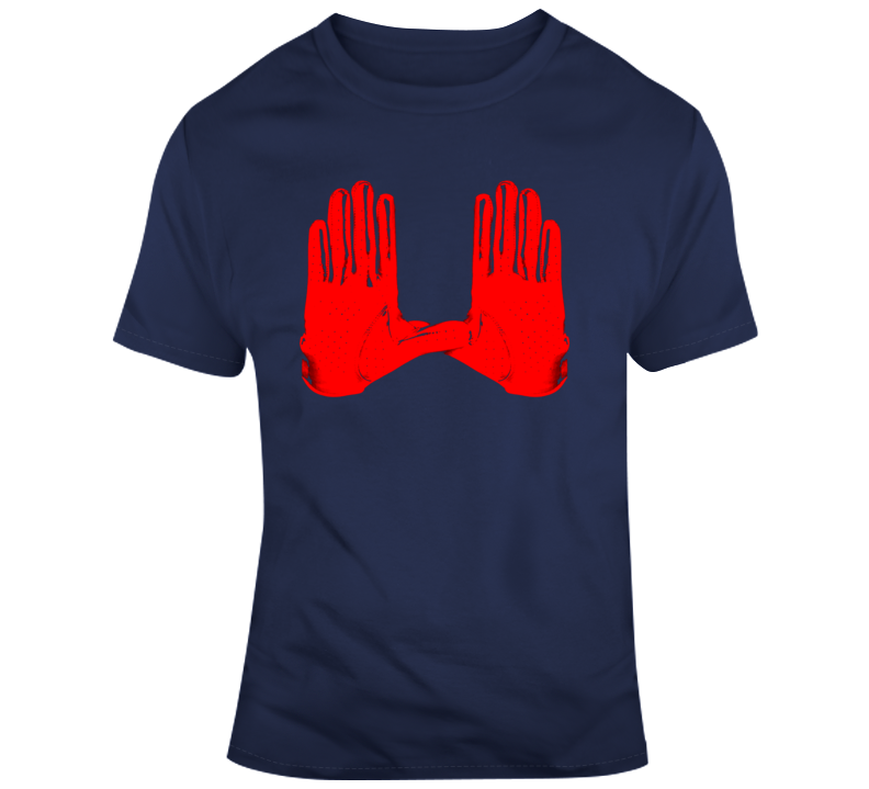 Julian Edelman Gloves New England Football Fan T Shirt is available on a Navy 100% Cotton Tshirt. The Julian Edelman Gloves New England Football Fan T Shirt is available in all sizes. Please select your desired shirt style and size from the drop down above.