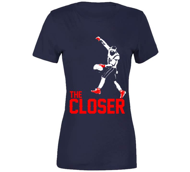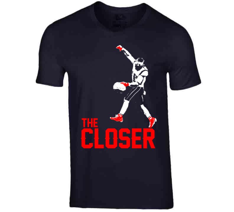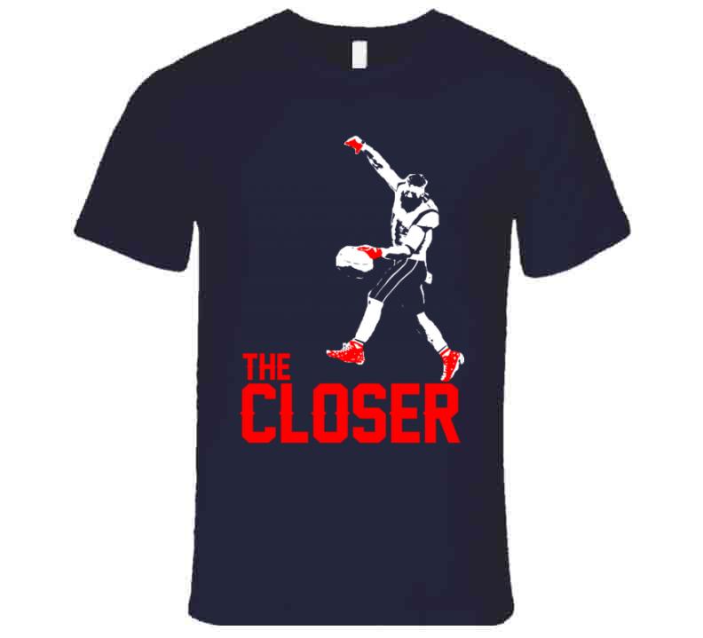 Julian Edelman The Closer Silhouette MVP New England Football Fan T Shirt is available on a Navy 100% Cotton Tshirt. The Julian Edelman The Closer Silhouette MVP New England Football Fan T Shirt is available in all sizes. Please select your desired shirt style and size from the drop down above.