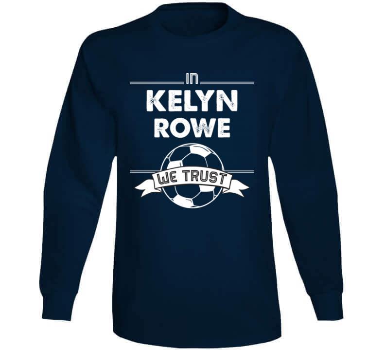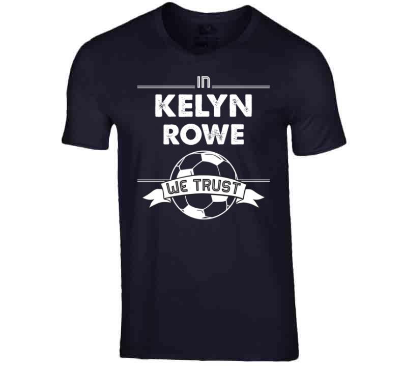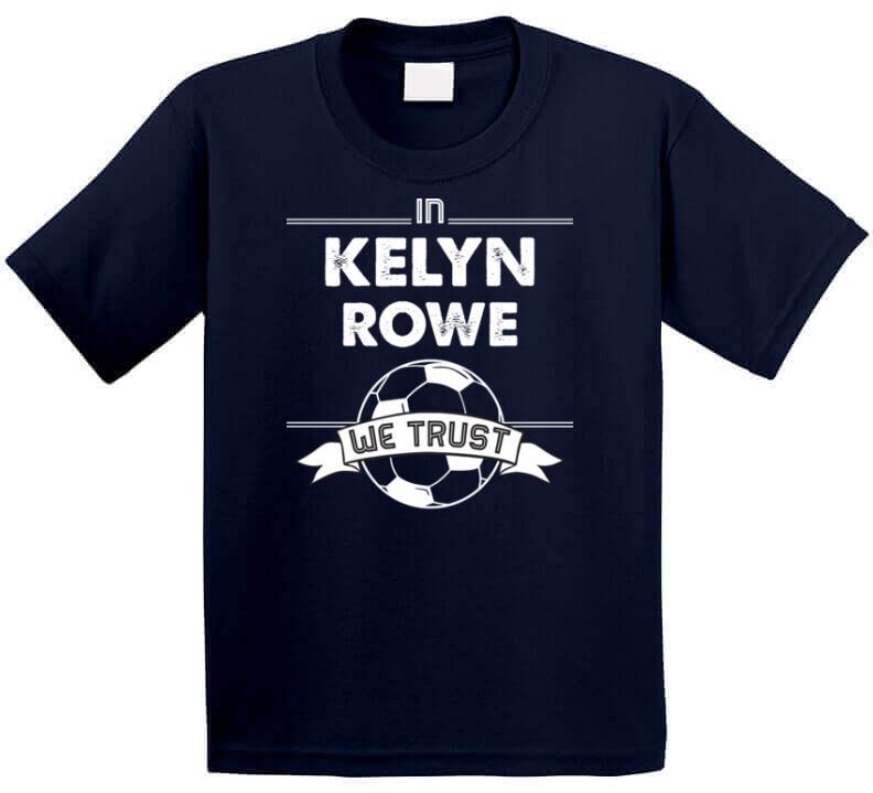 Kelyn Rowe We Trust New England Soccer T Shirt is available on a Navy 100% Cotton Tshirt. The Kelyn Rowe We Trust New England Soccer T Shirt is available in all sizes. Please select your desired shirt style and size from the drop down above.