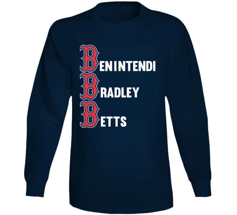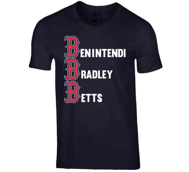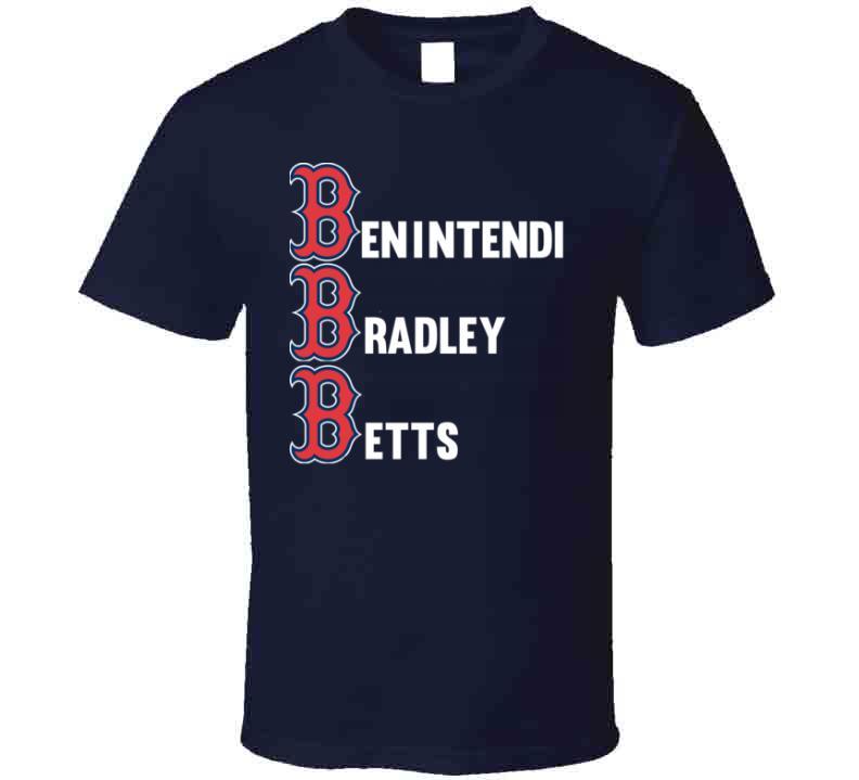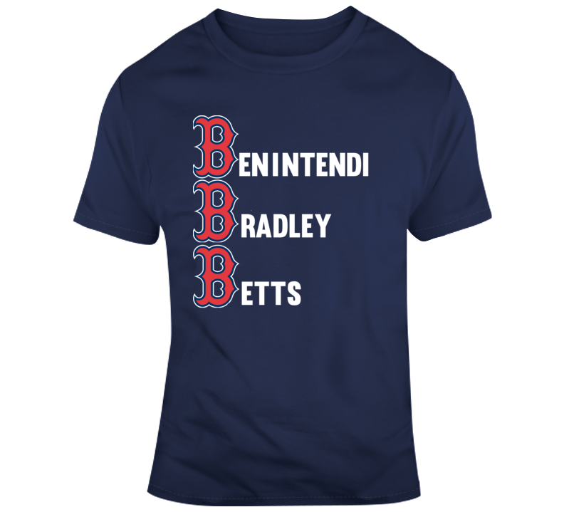 Killer Bs Benintendi Betts Bradley Boston Baseball Fan T Shirt is available on a Navy 100% Cotton Tshirt. The Killer Bs Benintendi Betts Bradley Boston Baseball Fan T Shirt is available in all sizes. Please select your desired shirt style and size from the drop down above.