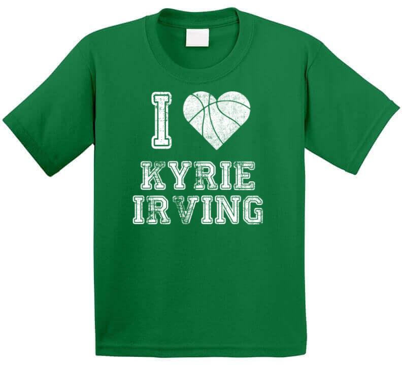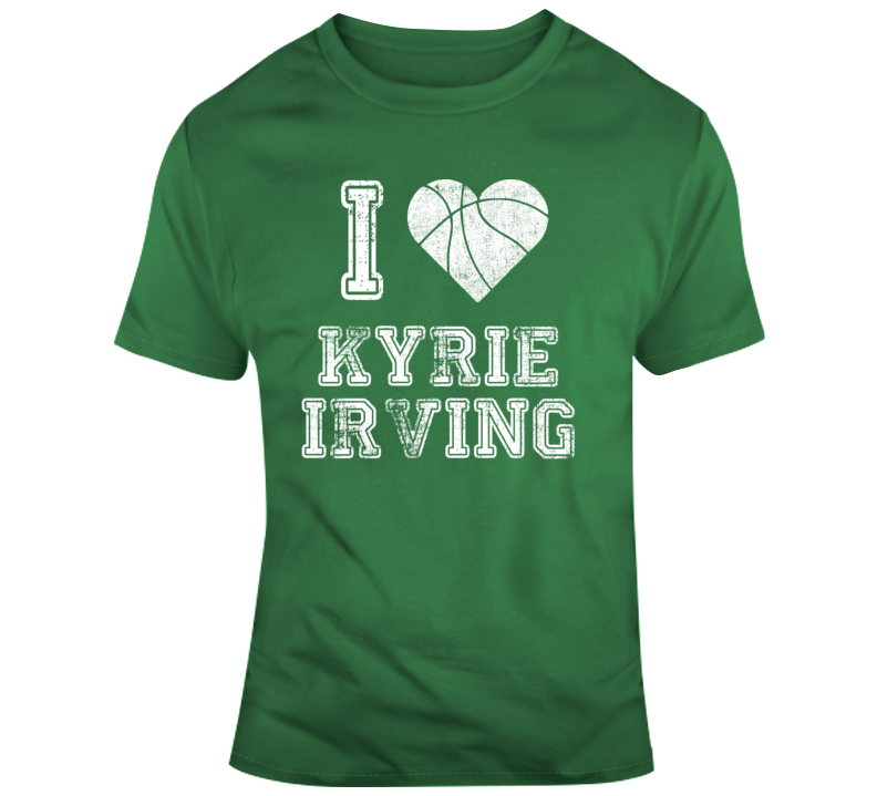 Kyrie Irving I Heart Boston Basketball Fan T Shirt is available on a Irish Green 100% Cotton Tshirt. The Kyrie Irving I Heart Boston Basketball Fan T Shirt is available in all sizes. Please select your desired shirt style and size from the drop down above.