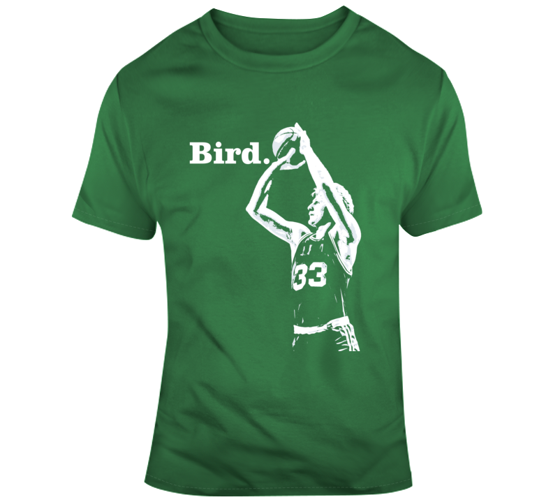 Larry Bird Silhouette BIRD Boston Basketball Fan T Shirt is available on a Irish Green 100% Cotton Tshirt. The Larry Bird Silhouette BIRD Boston Basketball Fan T Shirt is available in all sizes. Please select your desired shirt style and size from the drop down above.