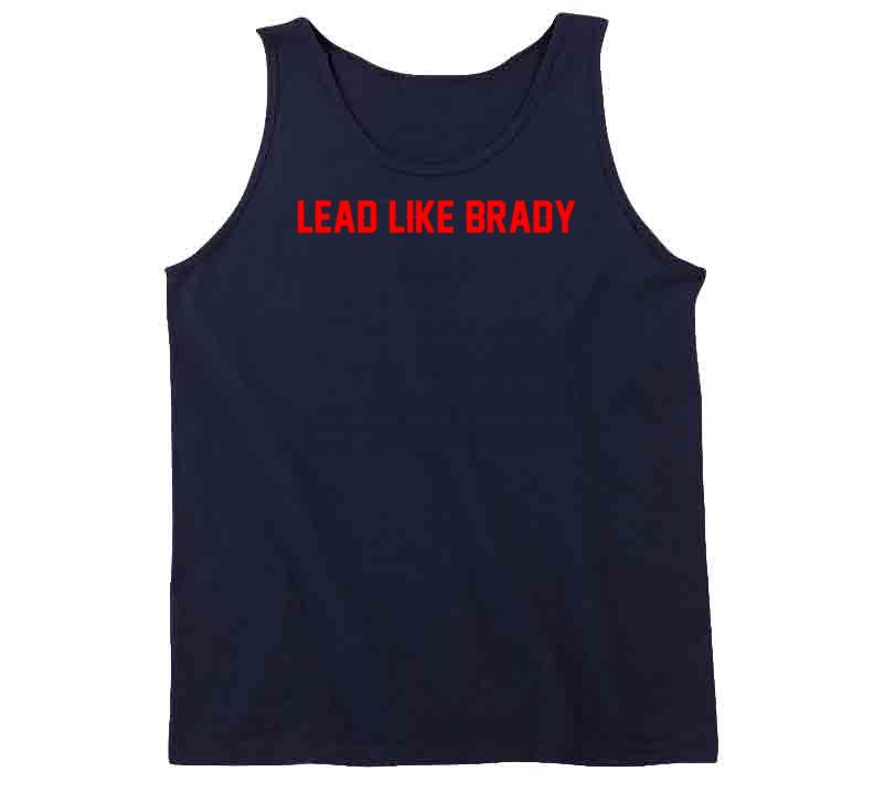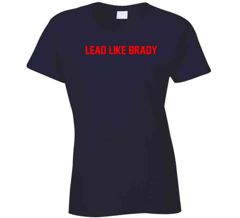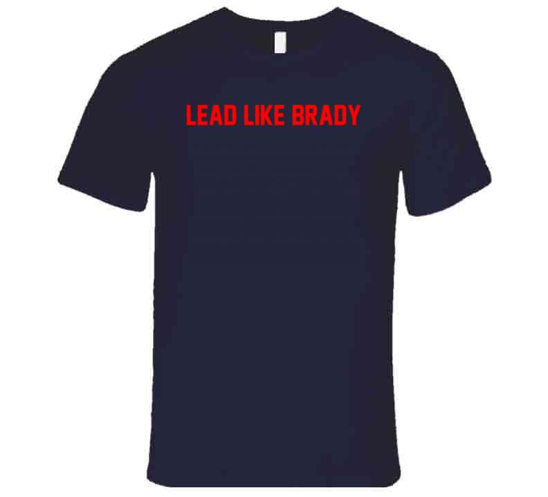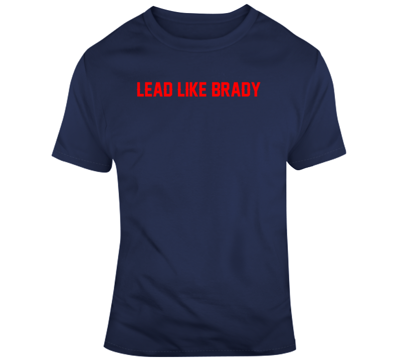 Lead Like Brady Tom Brady New England Football Fan T Shirt is available on a Navy 100% Cotton Tshirt. The Lead Like Brady Tom Brady New England Football Fan T Shirt is available in all sizes. Please select your desired shirt style and size from the drop down above.