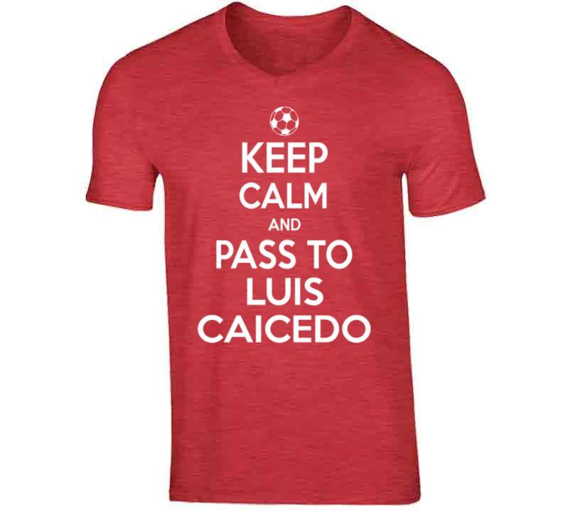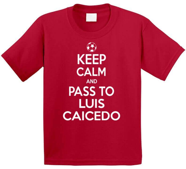 Luis Caicedo Keep Calm Pass To New England Soccer T Shirt is available on a Red 100% Cotton Tshirt. The Luis Caicedo Keep Calm Pass To New England Soccer T Shirt is available in all sizes. Please select your desired shirt style and size from the drop down above.