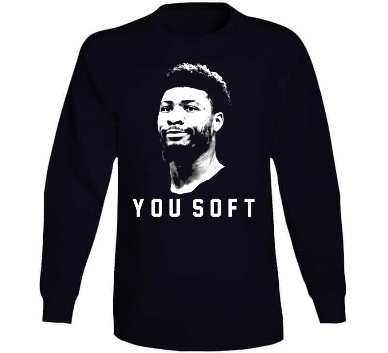 Marcus Smart You Soft Boston Basketball Fan T Shirt is available on a Black 100% Cotton Tshirt. The Marcus Smart You Soft Boston Basketball Fan T Shirt is available in all sizes. Please select your desired shirt style and size from the drop down above.