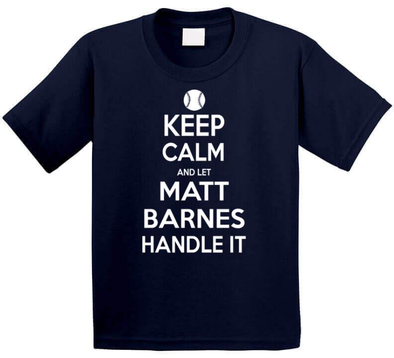 Matt Barnes Keep Calm Boston Baseball Fan T Shirt is available on a Navy 100% Cotton Tshirt. The Matt Barnes Keep Calm Boston Baseball Fan T Shirt is available in all sizes. Please select your desired shirt style and size from the drop down above.