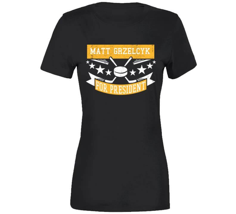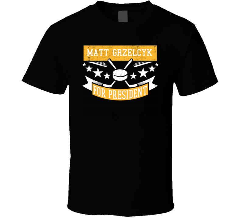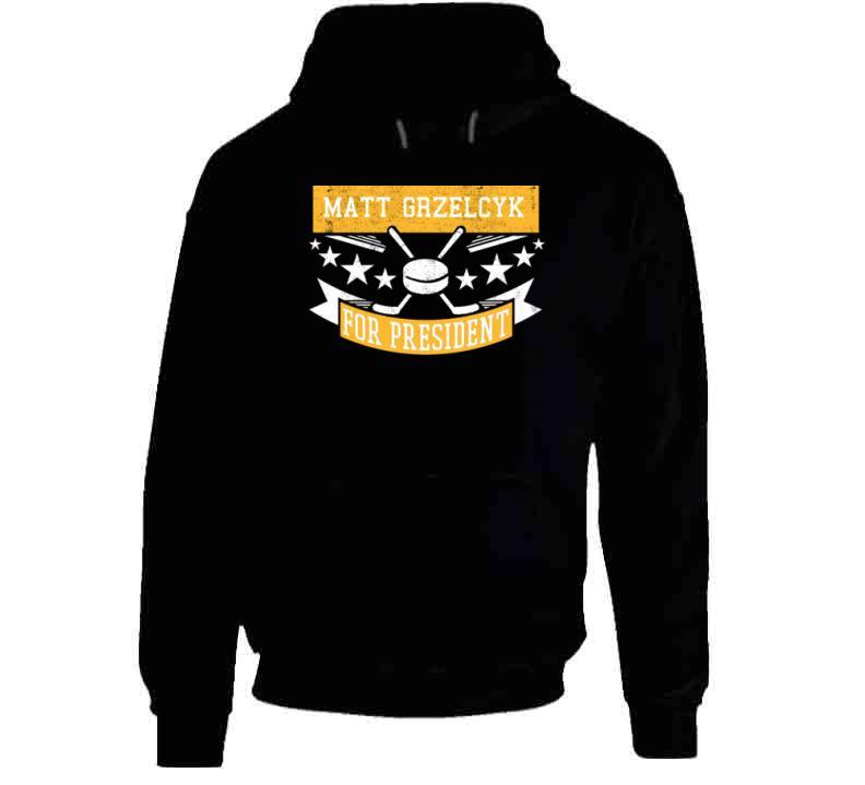 Matt Grzelcyk For President Boston Hockey Fan T Shirt is available on a Black 100% Cotton Tshirt. The Matt Grzelcyk For President Boston Hockey Fan T Shirt is available in all sizes. Please select your desired shirt style and size from the drop down above.