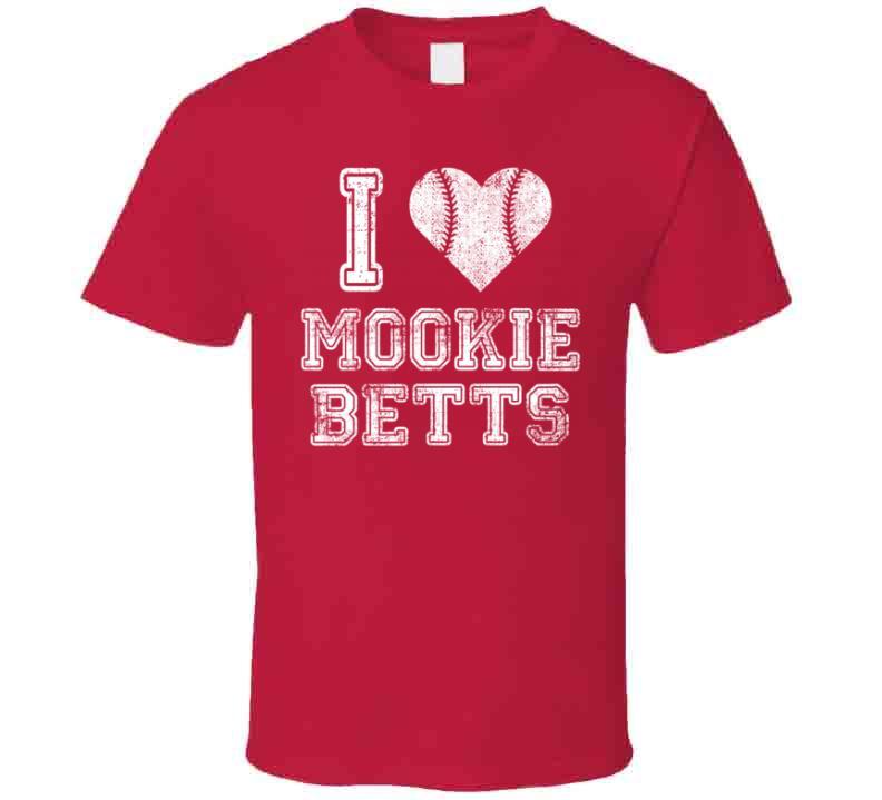 Mookie Betts I Heart Boston Baseball Fan T Shirt is available on a Red 100% Cotton Tshirt. The Mookie Betts I Heart Boston Baseball Fan T Shirt is available in all sizes. Please select your desired shirt style and size from the drop down above.