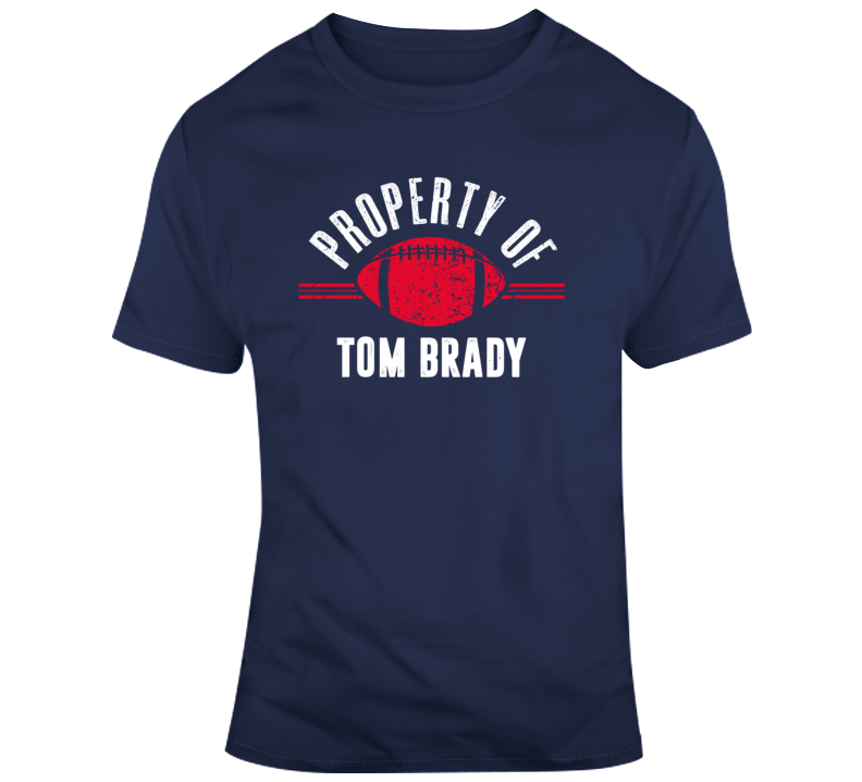 New England Property Of Tom Brady Football Fan T Shirt is available on a Navy 100% Cotton Tshirt. The New England Property Of Tom Brady Football Fan T Shirt is available in all sizes. Please select your desired shirt style and size from the drop down above.