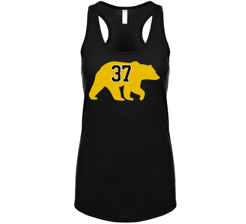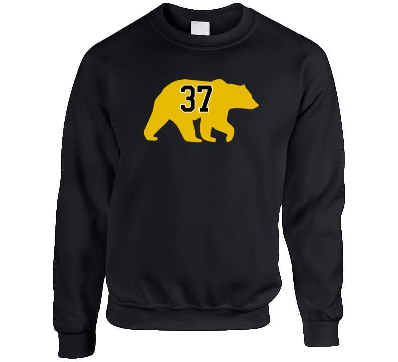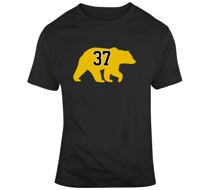 Patrice Bergeron Bear Silhouette 37 Boston Hockey Fan T Shirt is available on a Black 100% Cotton Tshirt. The Patrice Bergeron Bear Silhouette 37 Boston Hockey Fan T Shirt is available in all sizes. Please select your desired shirt style and size from the drop down above.