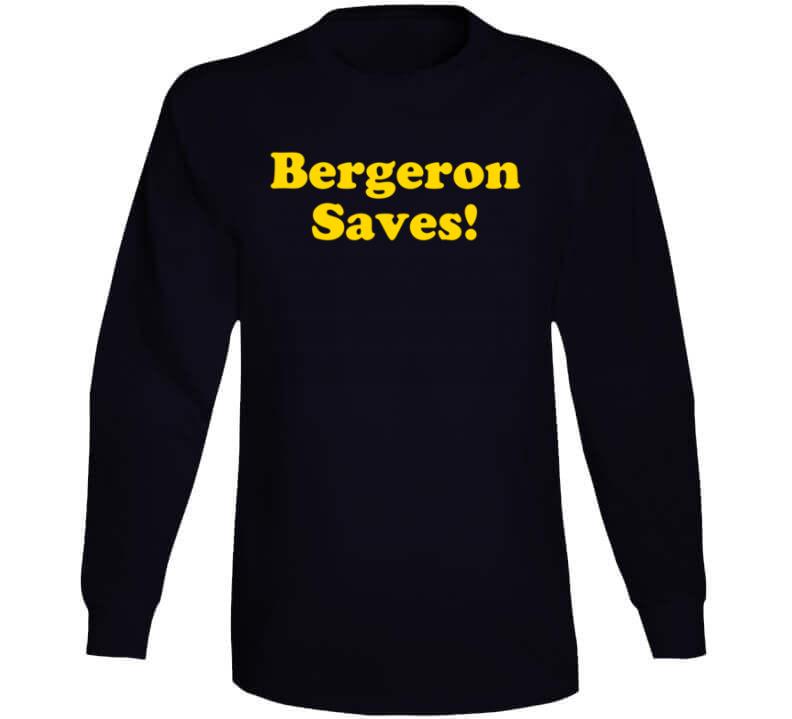 Patrice Bergeron Save Boston Hockey Fan T Shirt is available on a Black 100% Cotton Tshirt. The Patrice Bergeron Save Boston Hockey Fan T Shirt is available in all sizes. Please select your desired shirt style and size from the drop down above.