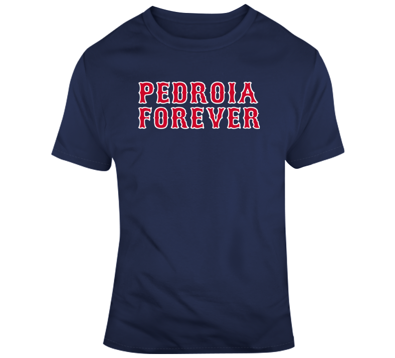 Pedroia Forever Boston Legend Dustin Pedroia Boston Baseball Fan V2 T Shirt is available on a Navy 100% Cotton Tshirt. The Pedroia Forever Boston Legend Dustin Pedroia Boston Baseball Fan V2 T Shirt is available in all sizes. Please select your desired shirt style and size from the drop down above.
