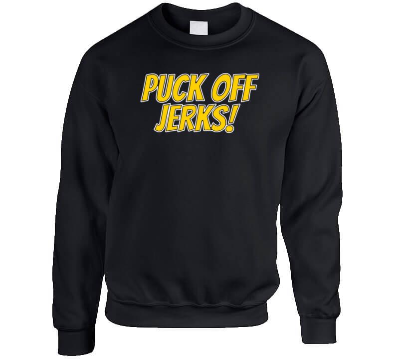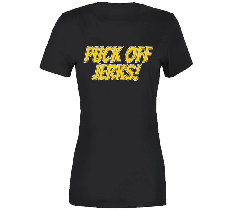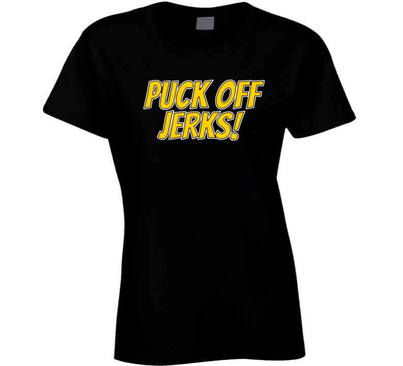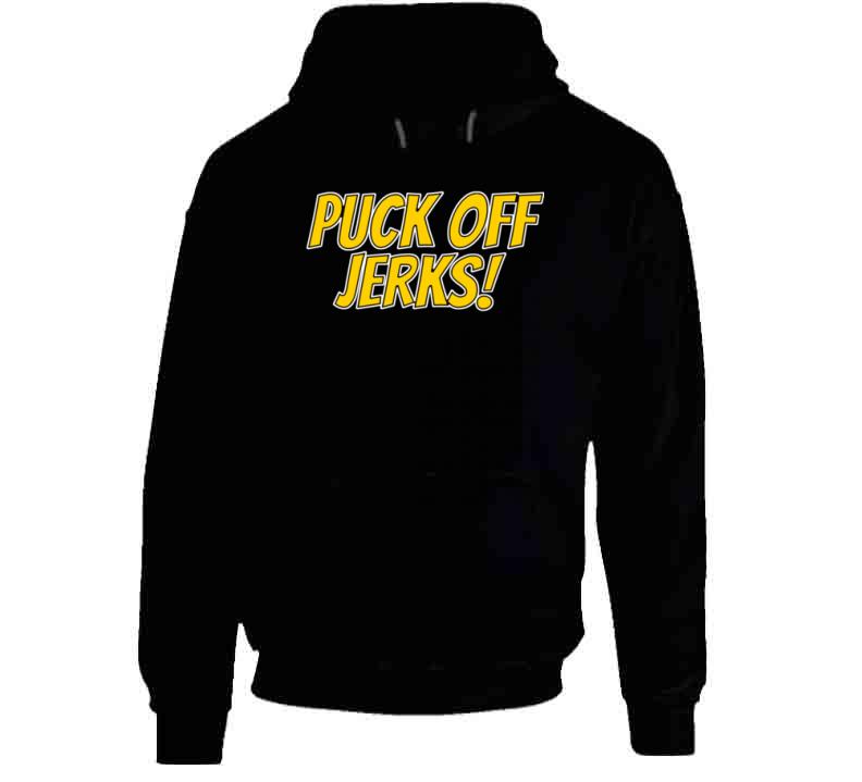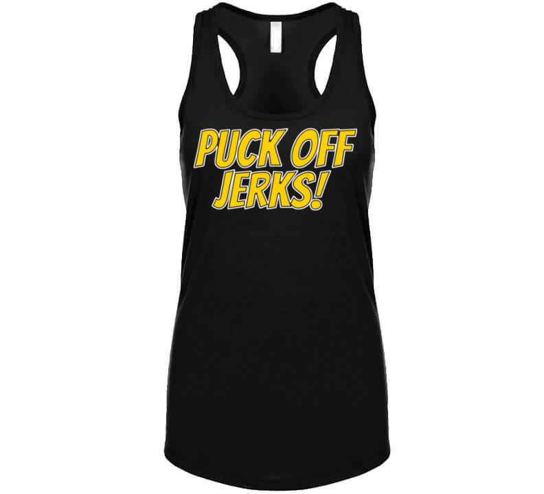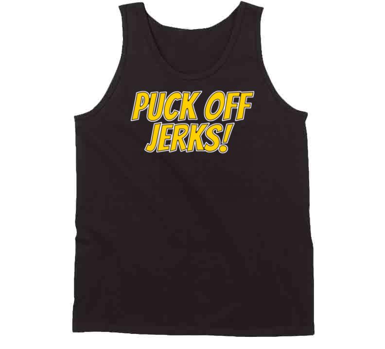 Puck Off Jerks Beat The Jerks Boston Hockey Fan T Shirt is available on a Black 100% Cotton Tshirt. The Puck Off Jerks Beat The Jerks Boston Hockey Fan T Shirt is available in all sizes. Please select your desired shirt style and size from the drop down above.