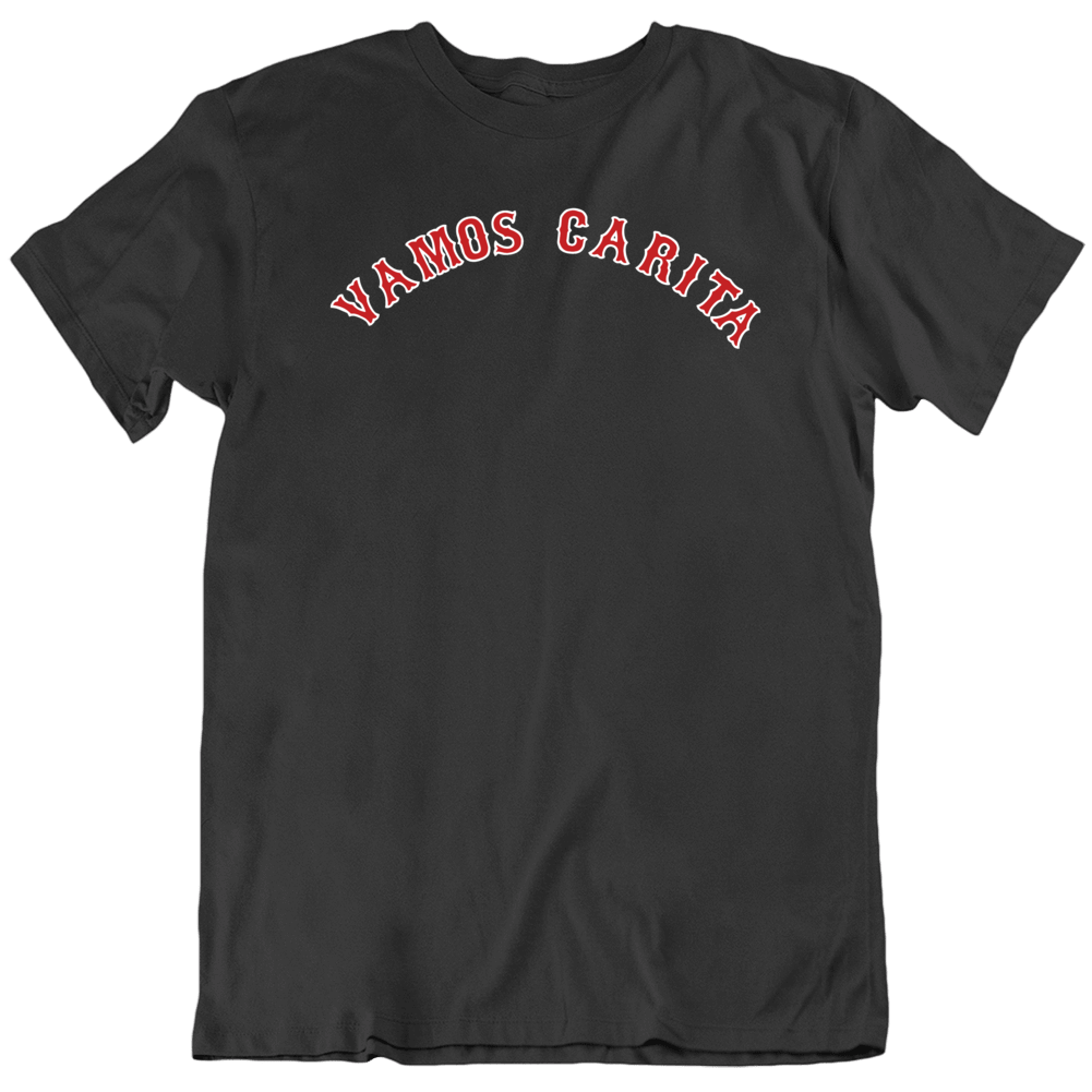 Rafael Devers Vamos Carita Boston Baseball Fan T Shirt is available on a Black 100% Cotton Tshirt. The Rafael Devers Vamos Carita Boston Baseball Fan T Shirt is available in all sizes. Please select your desired shirt style and size from the drop down above.