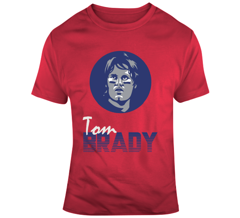 Retro 80s Style Tom Brady New England Football Fan T Shirt is available on a Red 100% Cotton Tshirt. The Retro 80s Style Tom Brady New England Football Fan T Shirt is available in all sizes. Please select your desired shirt style and size from the drop down above.