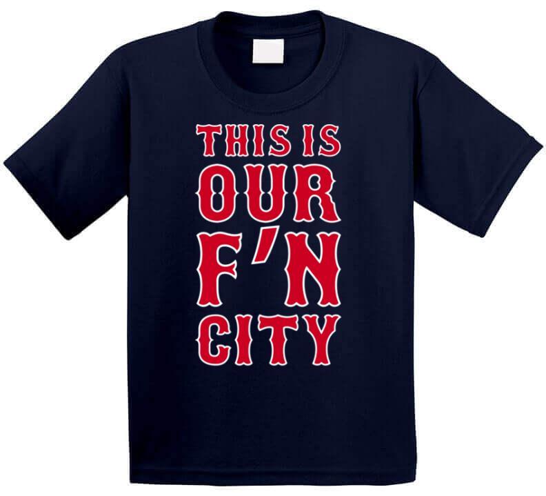 David Ortiz This Is Our FN City Boston Baseball Fan T Shirt is available on a Navy 100% Cotton Tshirt. The David Ortiz This Is Our FN City Boston Baseball Fan T Shirt is available in all sizes. Please select your desired shirt style and size from the drop down above.